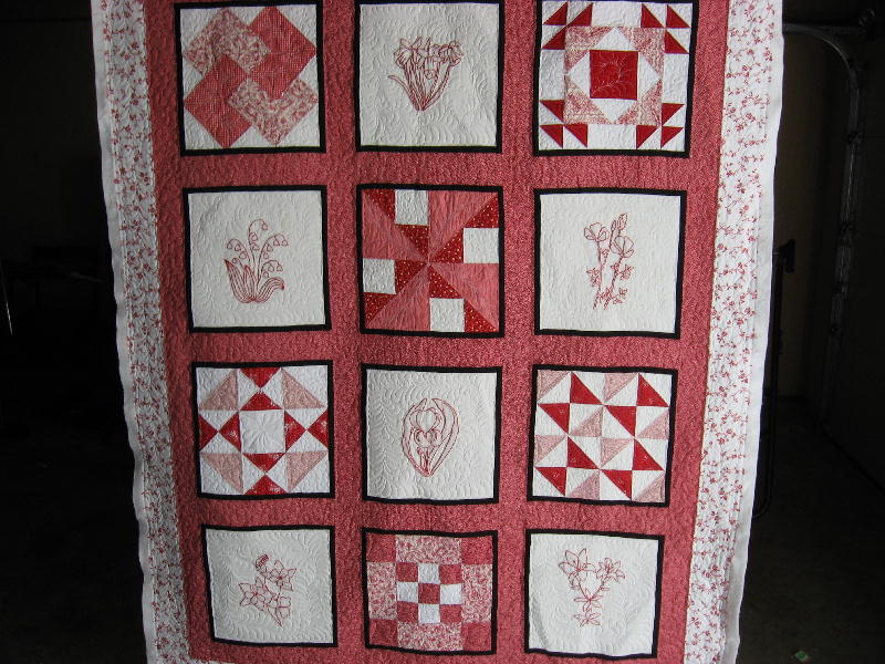 I didn’t work on my 8 year old mystery at all yesterday, so I better work 10 minutes on it today! LOL! I did get this weeks clue finished for the current mystery quilt that I’m doing. Plus I quilted on a huge customer quilt yesterday. I’m almost finished with it. Maybe another 45 minutes to an hour and it will be done. Then I have to put the binding on. (sewn down by hand) Hopefully I can be done with it and deliver it at guild tomorrow night.