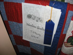 My sister and I both did well on blue ribbons too. The fair is being relocated to new land, so it’s being held in a temporary location. It makes it bad because they used to hang most of the large quilts on the walls and now they have to drape them on racks, so you don’t get to see the whole thing. Anyway, hopefully next year the new fairgrounds will be ready.