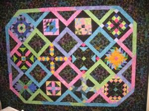 I’m not participating in the shop hop, but I did stop by my LQS today. They said this years hop is going great. We’re having wonderful weather here, so I’m sure that helps. My sister and niece just happened to come in the shop while I was there, so I visited with them for a while. Now it’s back home and get some work done. It’s almost too nice outside to go downstairs and quilt, but I will anyway. Here is this years shop hop quilt for Quilters Quarters. (Since I quilted it, it’s the only one I’ve seen.)