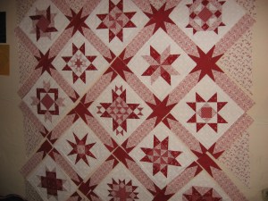 I have the 2009 BOM on the design wall. I have 2 of the rows sewn together. I hope to get the other rows sewn together in the next few days. I also need to get 3 quilts quilted this week. So we’ll see how much sewing I get done.
