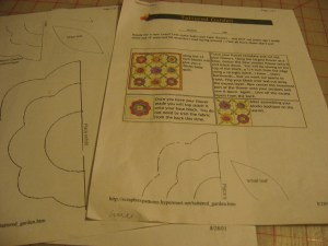 I picked up some black and white fabric that had sewing notions on it from one of the shops and then later I bought a pattern for a quick bag. After I got home I decided that I would use the fabric I bought and add a solid black and some fabric with scissors (since I needed 4 fabrics) and make the bag from it. It was a great bag to carry stuff in. I used it Saturday at the AQS show.