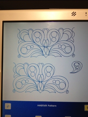 This is the pattern I used . The top pattern is what I used as the panto for the body of the quilt, and also for the center of the borders. The bottom pattern shows where I took away part of the pattern in order to use it on the corners. The small motif is what I put in the very corner to fill the space.