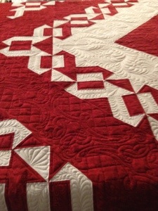 Speaking of big. The red and white quilt from last week was 108″x108″. For those that wanted to see more of it.