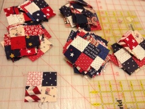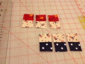I got in my scraps and cut lots of 1 1/2″ strips. I use whatever size strips I have.