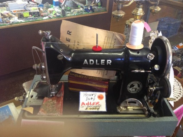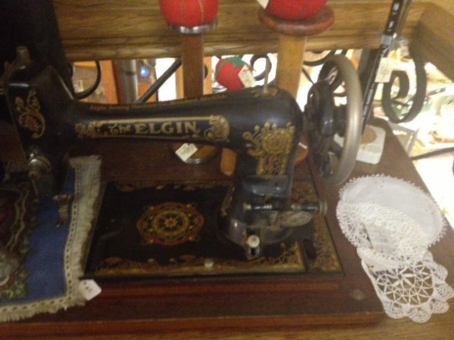 Those were all in the Antique store. Across the road there was an old garage with antique cars in it. We went inside to get a good look at the ’65 Mustang and there were 2 old sewing machines in there!