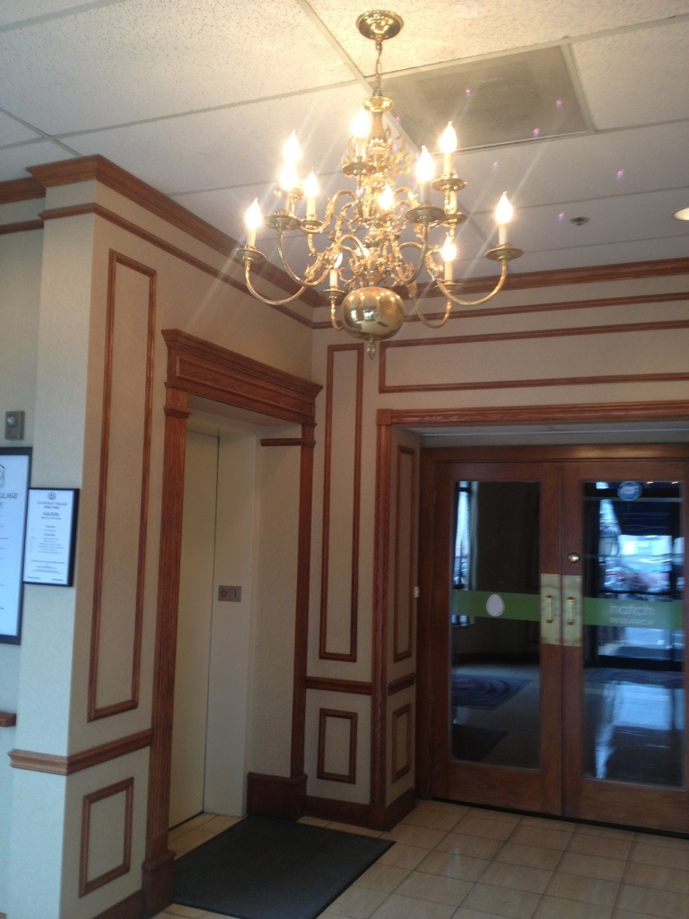 Down the hallway (after taking the elevator up to the 2nd floor)-