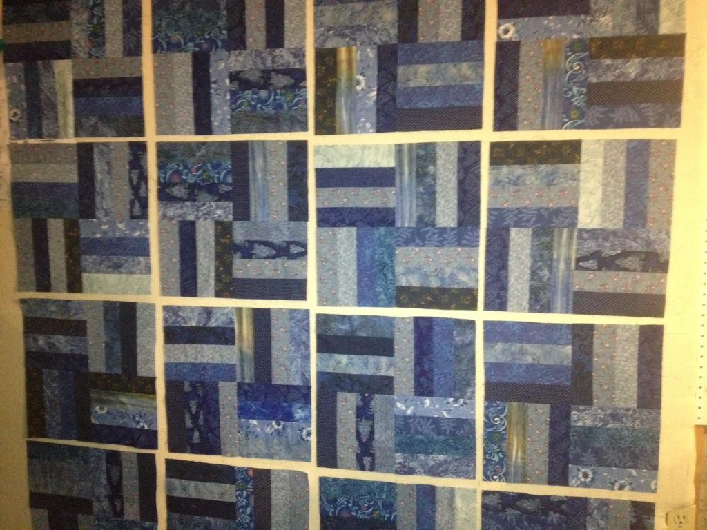 I sewed the strips together that I cut last week. I put what would fit up on the wall today to take the picture.