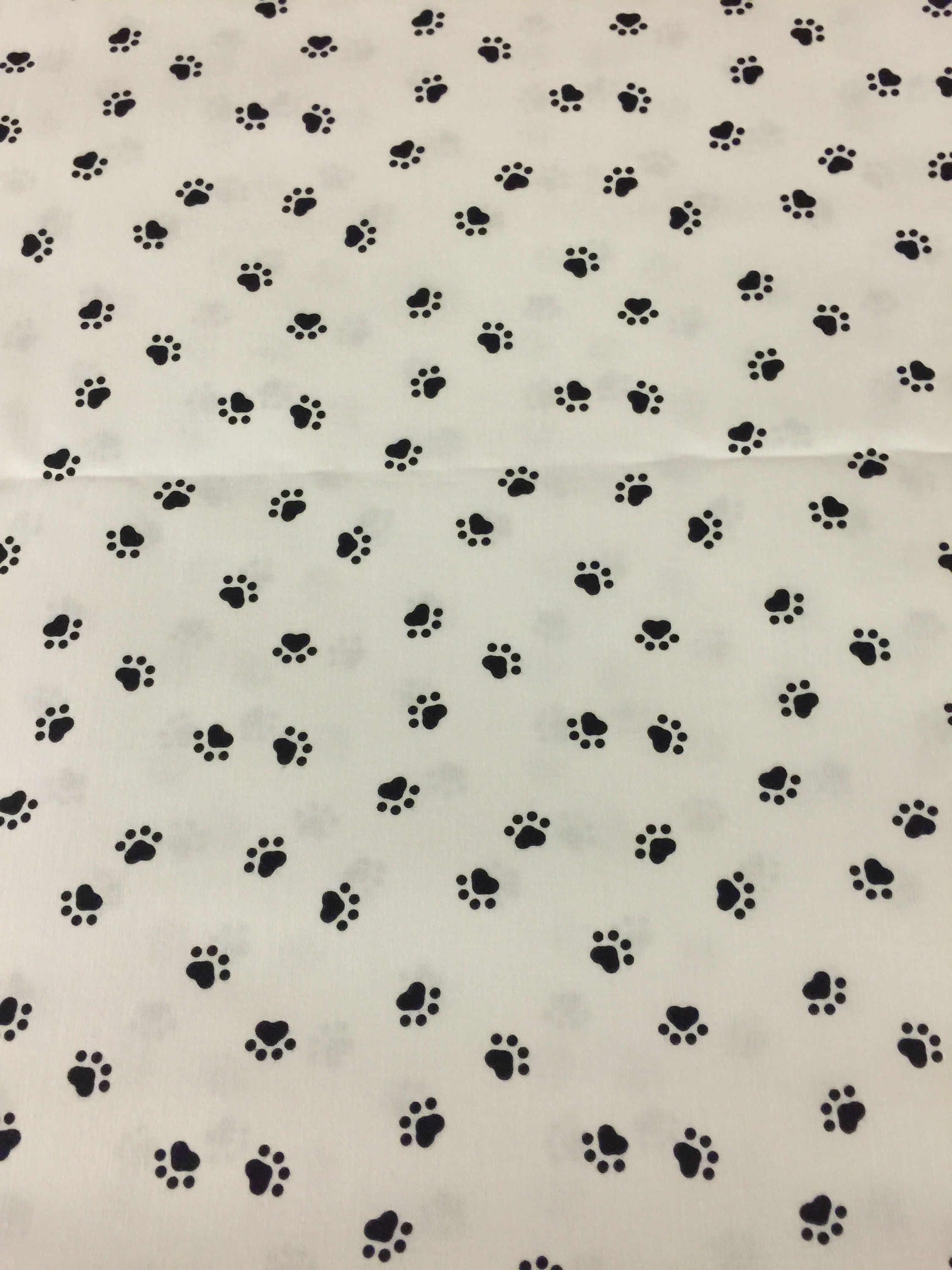 Today I found a cute black and white paw print fabric that is perfect for the back.