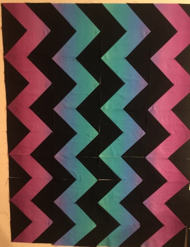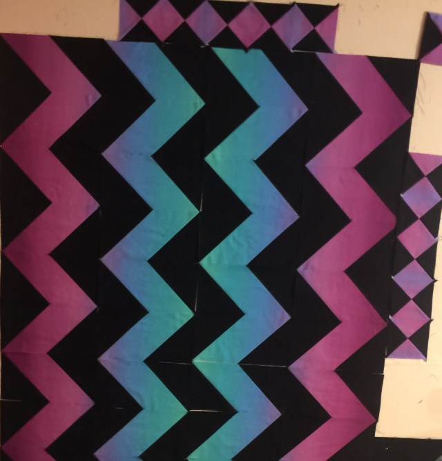 I got an idea a while back about using EE Schenk’s gelato fabric in a zig zag design. I have a few of the different colors that it comes in, and since I wasn’t sure how it would turn out, I went with one that doesn’t have a big noticeable change in the colors.