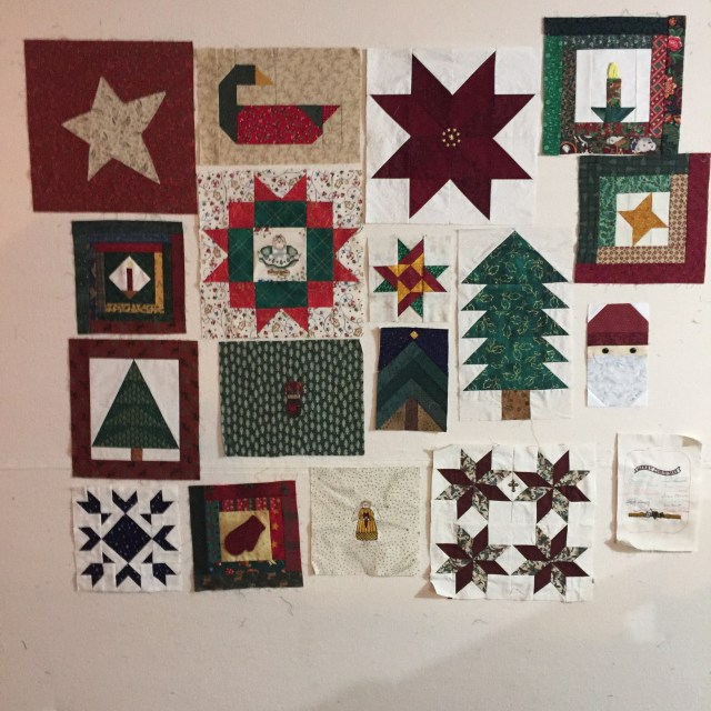 Years ago (maybe 15 or so) I participated in a Christmas block exchange at my guild and I have never put the blocks together into a quilt. Each year at Christmas, I think about those blocks and tell myself that I need to get them sewn together, but soon Christmas is over and I move on to other projects. After all, I have plenty of time to work on them, it’s a whole year before it’s Christmas again.π³