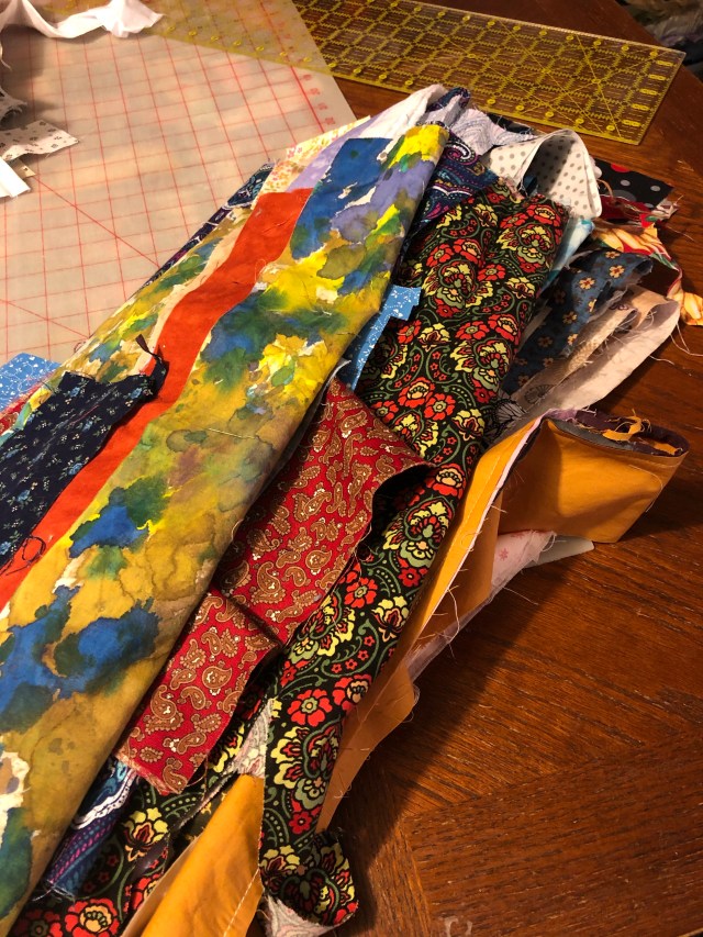 Strips are now ready to sew. I’m not sure what I will make yet, so I will keep making string foundations. That is the fun of making string quilts. You don’t have to know what you’re going to make when you make your foundation pieces. The magic comes later after you decide what you’ll make.
