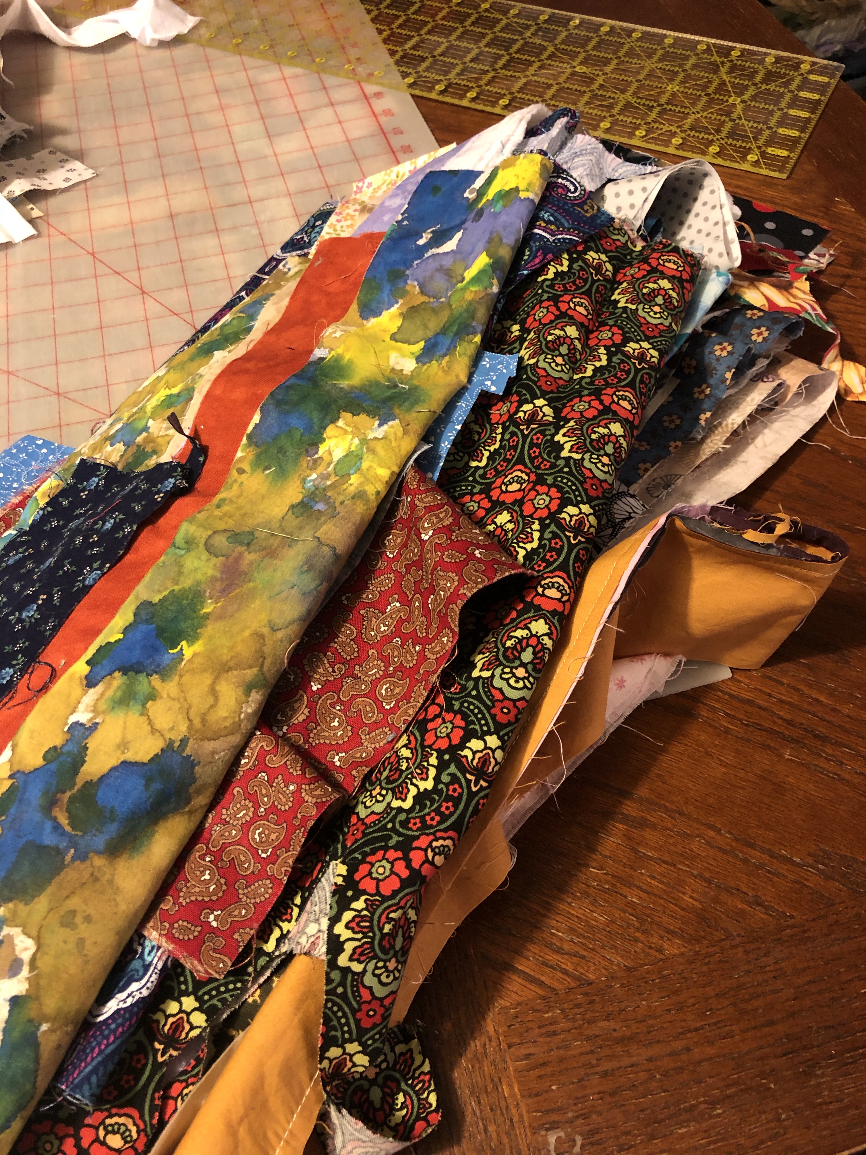 Strips are now ready to sew. I’m not sure what I will make yet, so I will keep making string foundations. That is the fun of making string quilts. You don’t have to know what you’re going to make when you make your foundation pieces. The magic comes later after you decide what you’ll make.