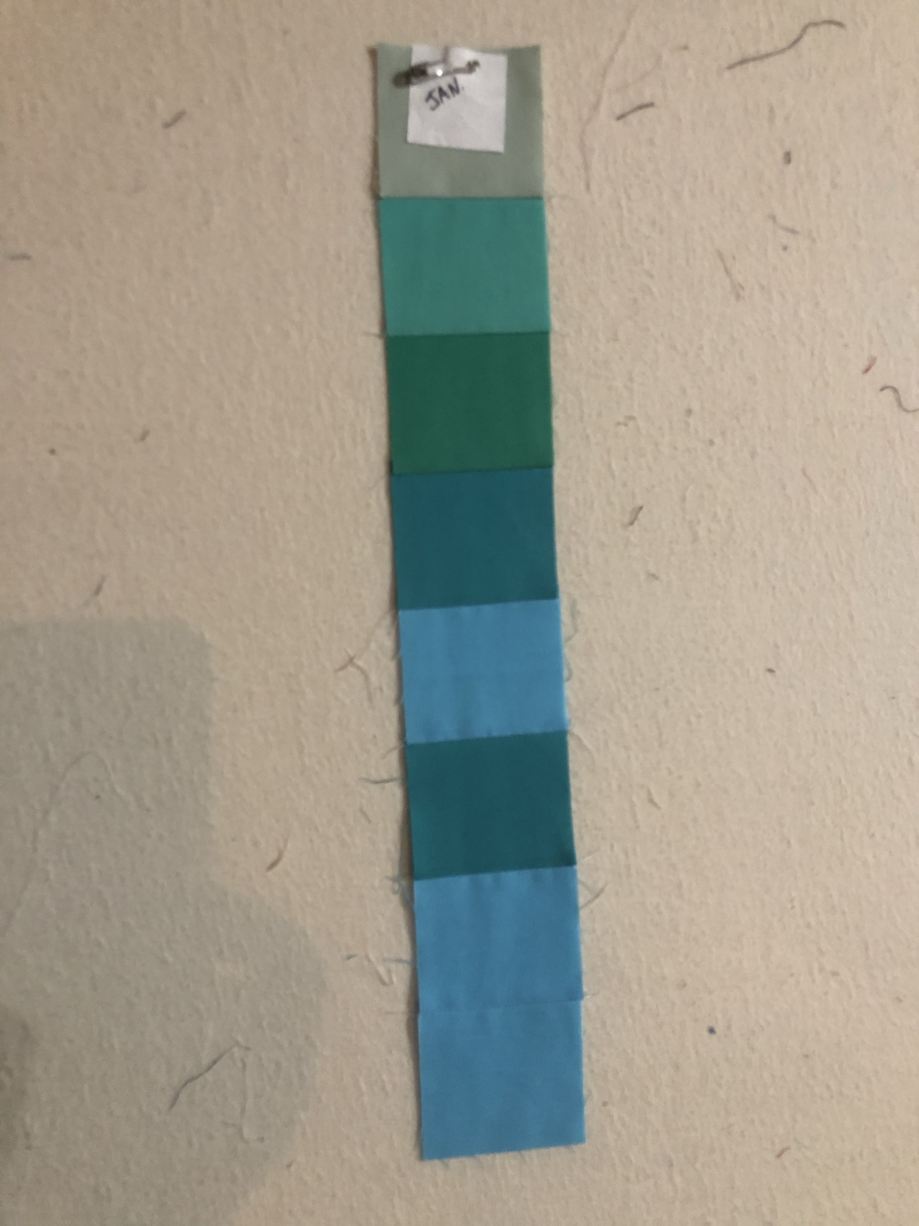 I decided that maybe this will work if I give each strip a 2 degree number. So I made a chart and picked out 47 strips. (Most temp quilts aren’t made with that many colors) I am hoping that we don’t have more than 17 days with the same temp!! 😳