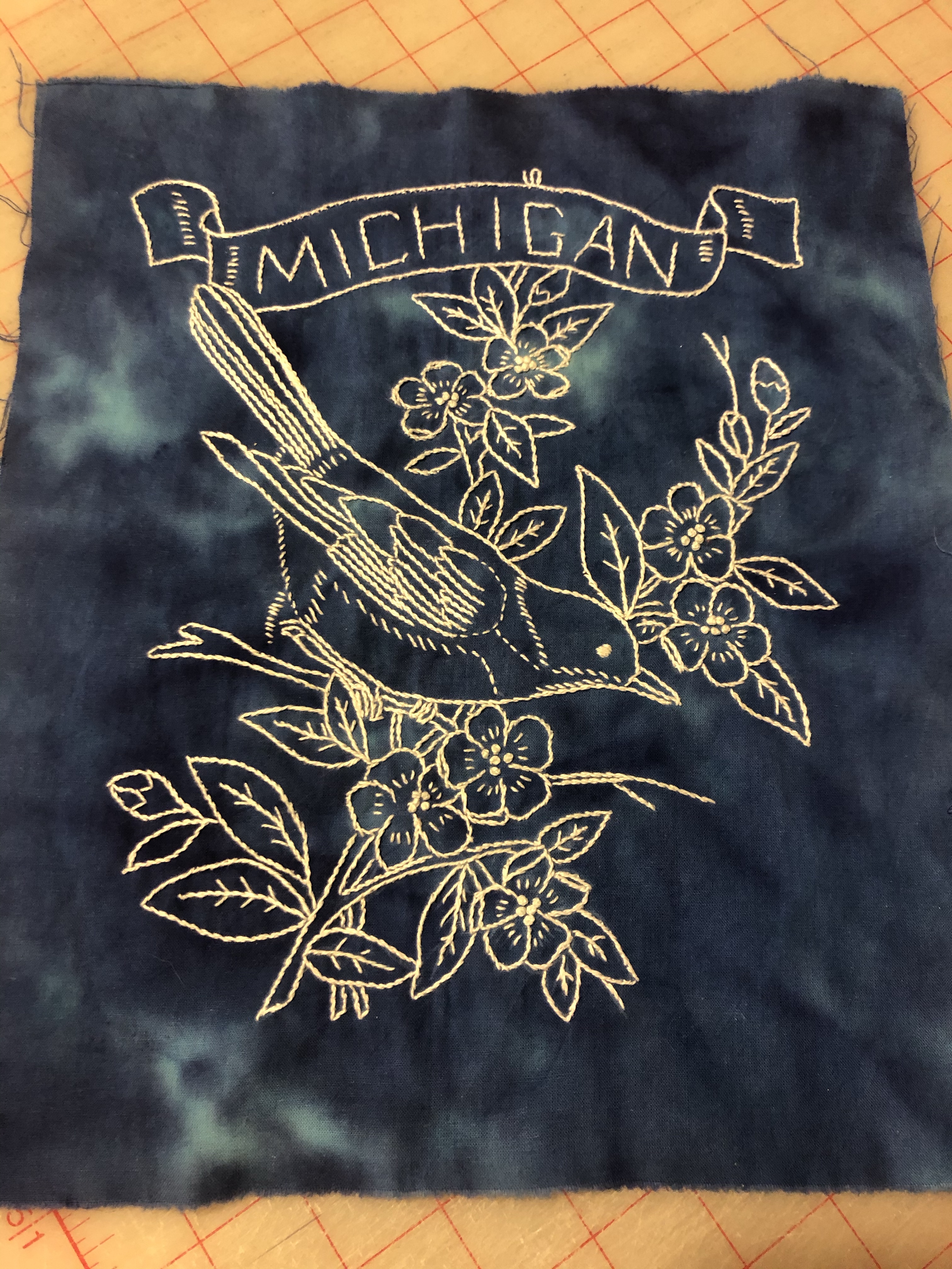 I have made progress on my 10 minute a day project. It’s the State bird blocks. Back in January I was working on the Michigan block.
