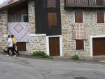 Whew! What an enjoyable week I had in Italy! The quilt show I went to was held in a small village in the mountains. Talk about beautiful!! The town was so old and you could look between the houses and see mountains. The quilts were hung outside in the little courtyard and some were out in the open area of the town hanging on the sides of the buildings.