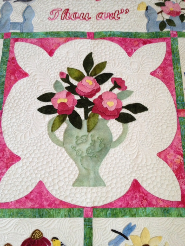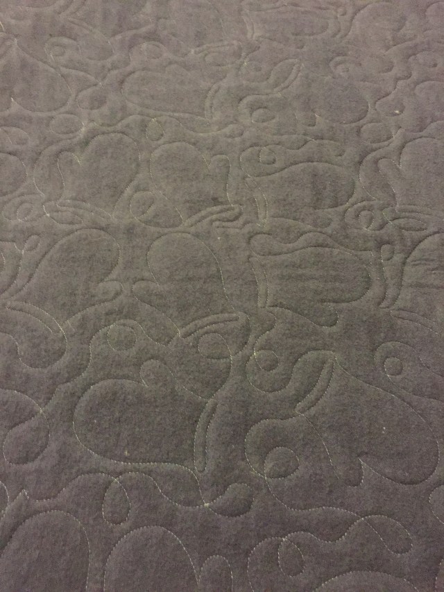 I managed to get a couple of my quilts on the machine last week and did quick panto’s on them. I’m only showing the block on this one.