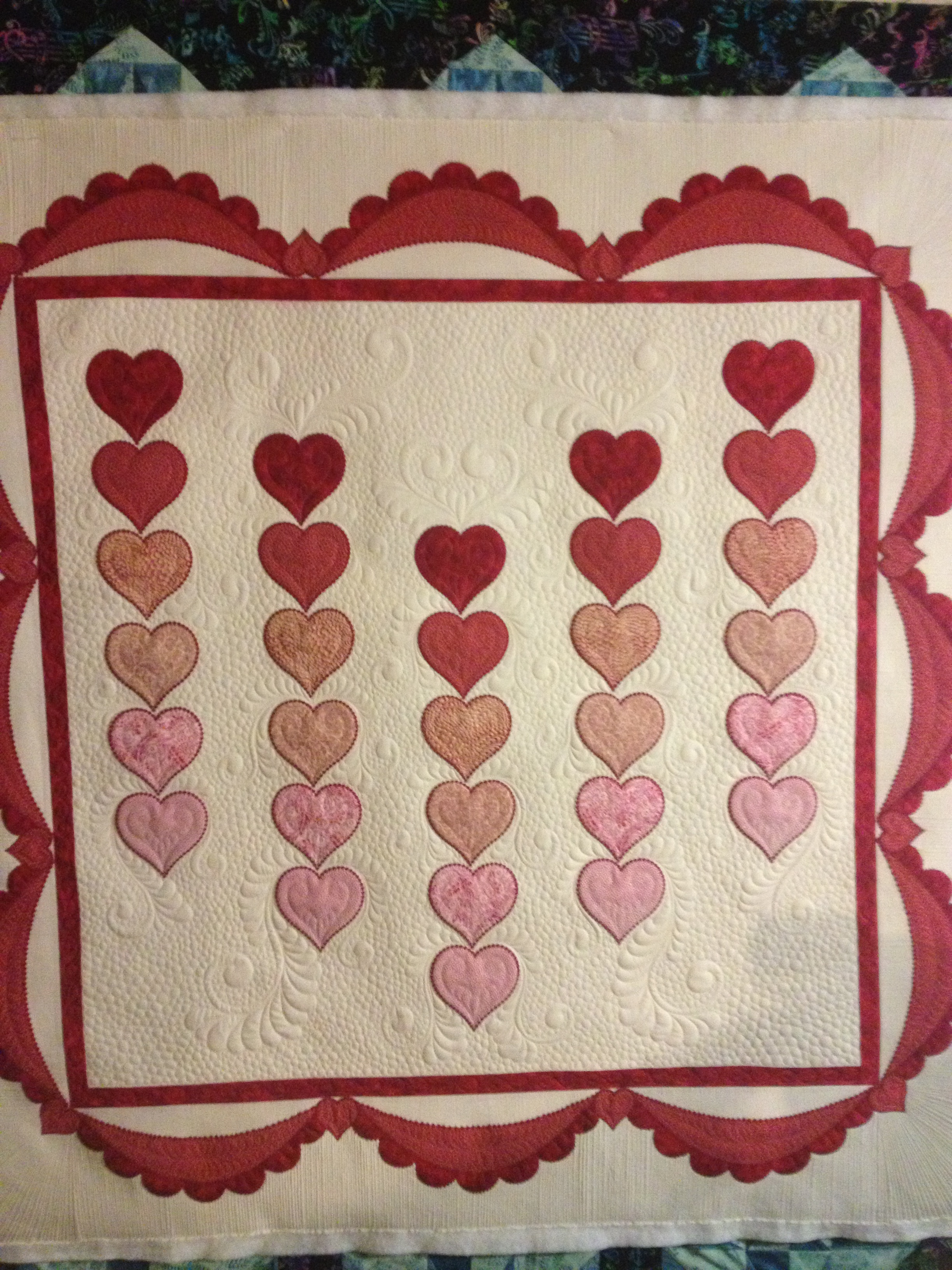 I didn’t get a whole lot done this week as far as my stuff goes. I did manage to find time to get the rest of the borders sewn onto the Novelty Fun quilt I had on my wall last week.
