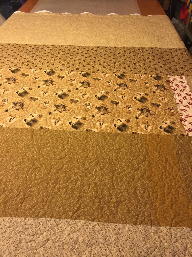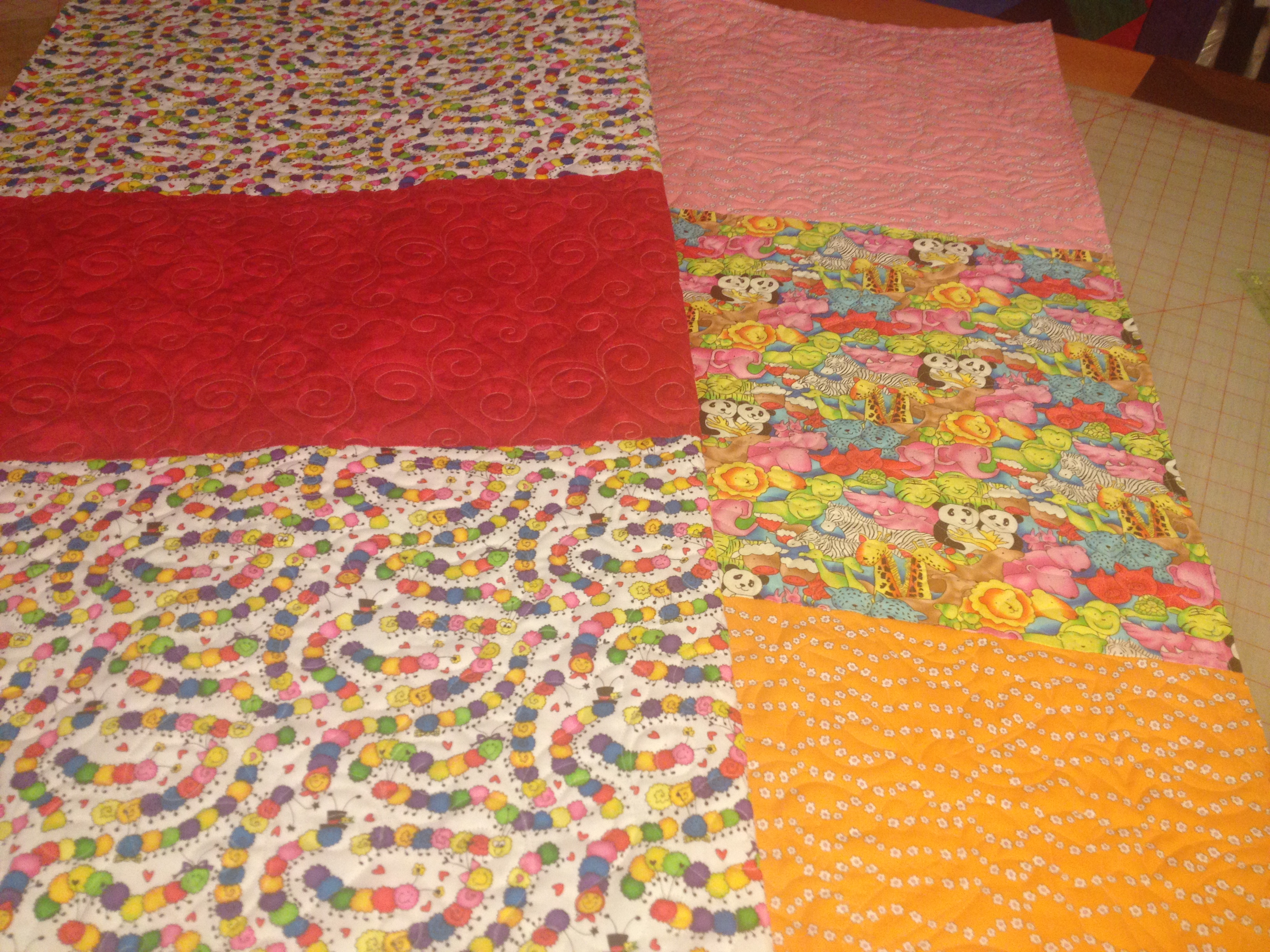 Β I chose a butterfly pantograph pattern to go along with the fabric. The binding is attached, just need to sew it down and I can call it done! π