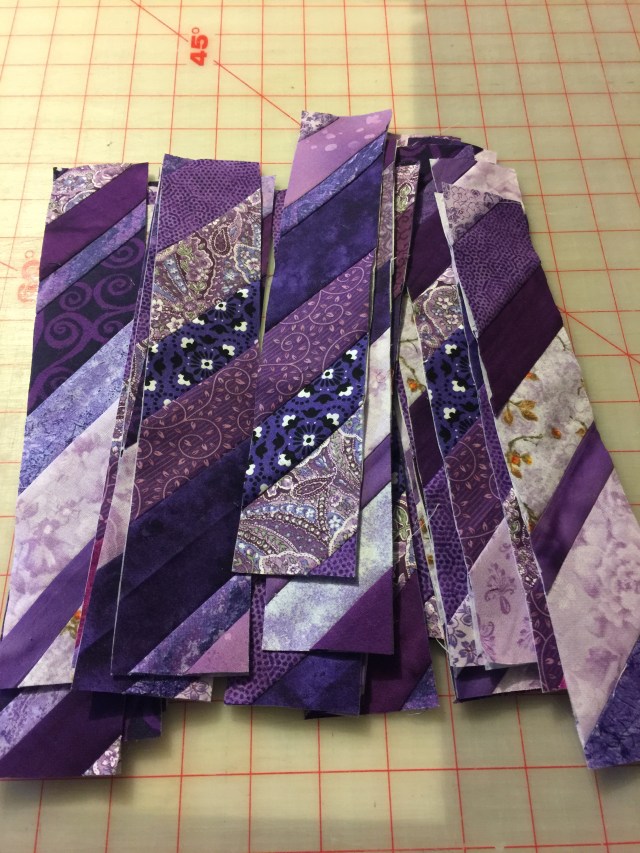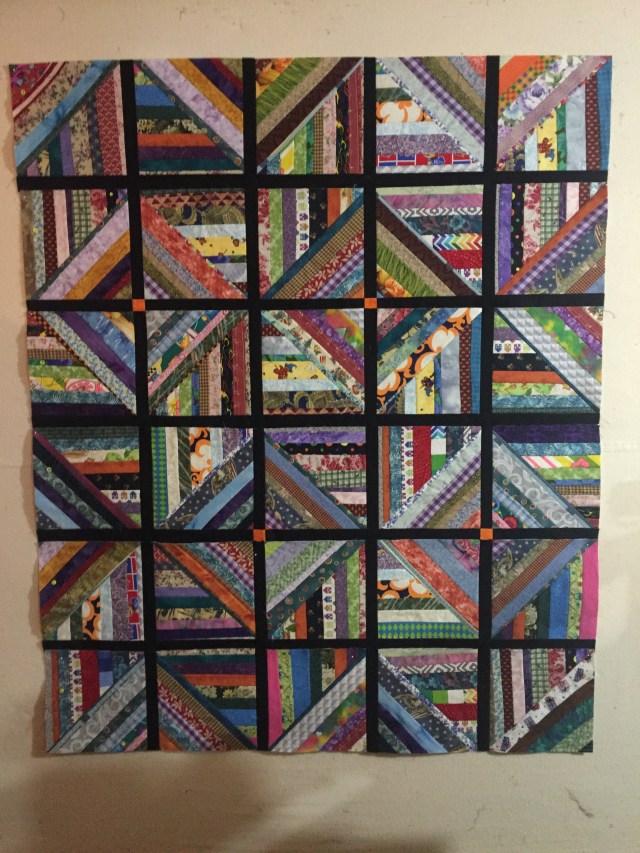 I finally got back to working on a new string quilt and I am currently sewing the rows together. It’s on the design wall this week. When I get time I will finish sewing them together and get the borders added on.