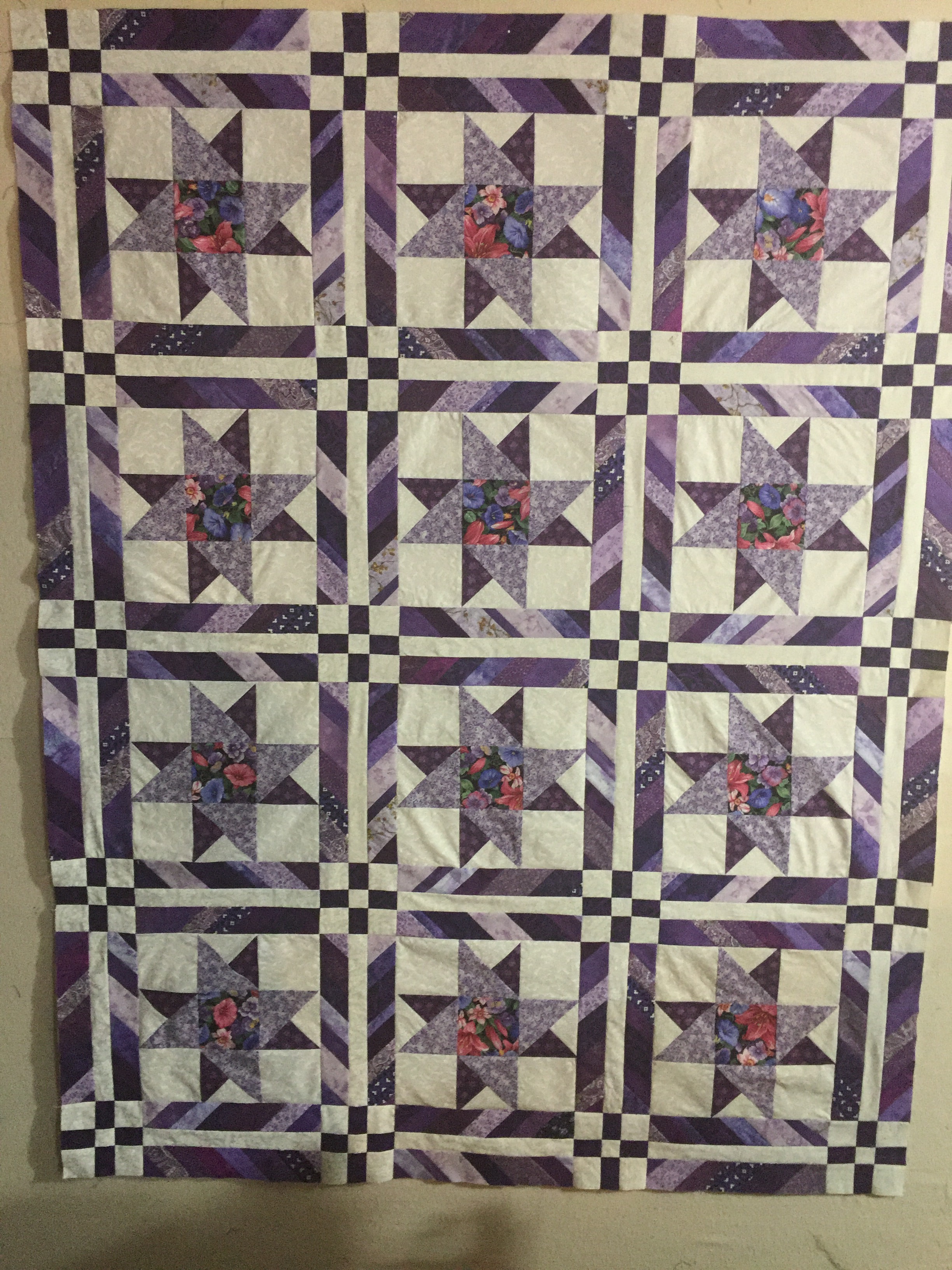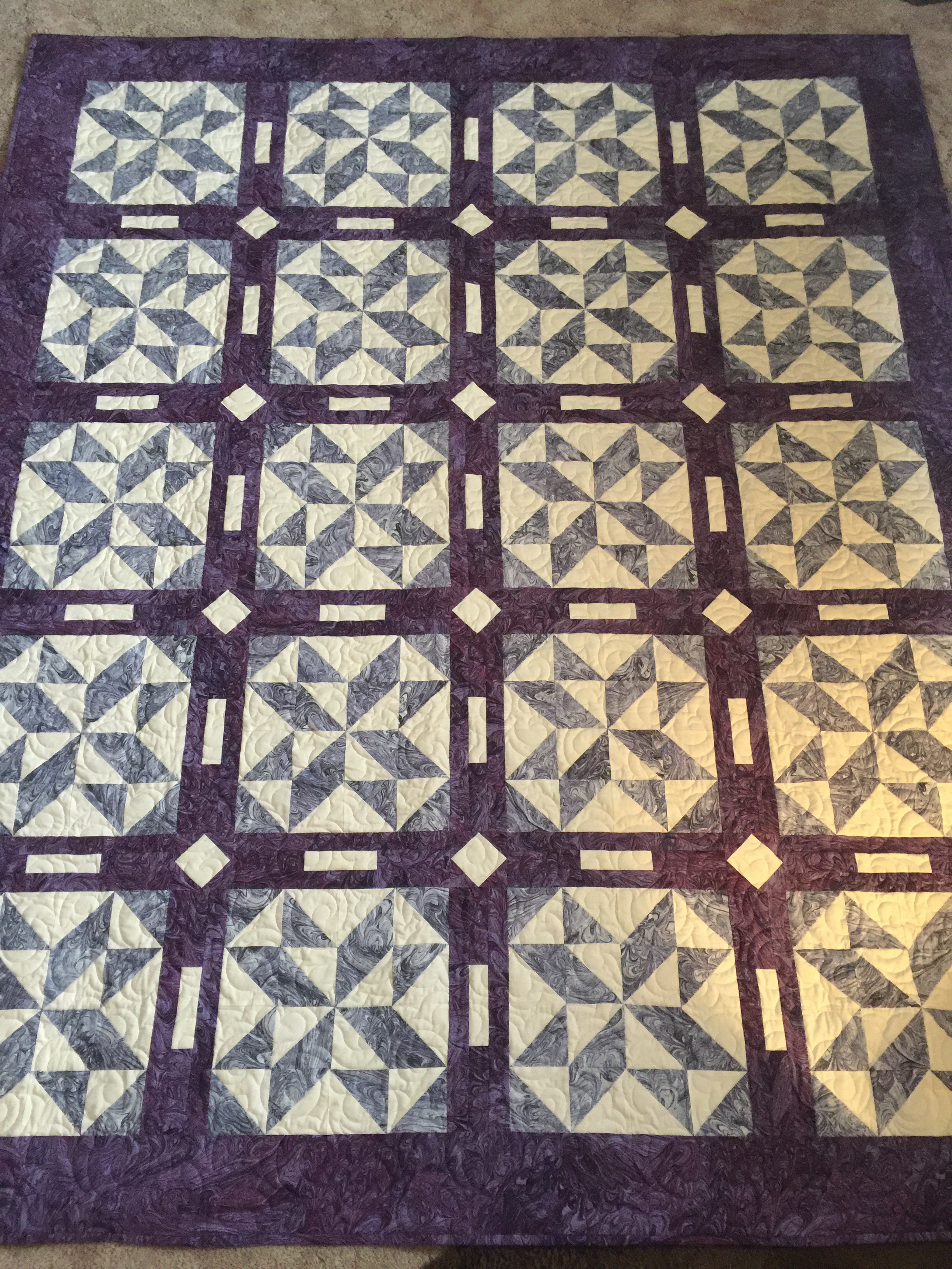 Life’s been busy the last few weeks and I haven’t had (or rather taken) the time to post anything. I did finish my Triple play quilt top and it’s quilted and bound. Yea!